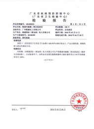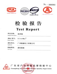 | 广东省产品质量监督检验中心-银康纳米银检测报告 检测表明:金色葡萄球菌的杀菌率在24小时内高达99.74% 大肠埃希氏菌的杀菌率在24小时内高达99.60% | ||