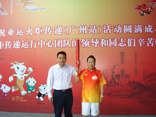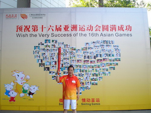 我司董事长何国才先生(新加坡广东会馆会长、广东省海外交流协会理事、广州市海外交流协会理事)荣为亚运会火炬手,于2010年11月9日上午9点在越秀公园参加了亚运会火炬传递。以下是何国才先生参加亚运会火炬传递的相关图片: