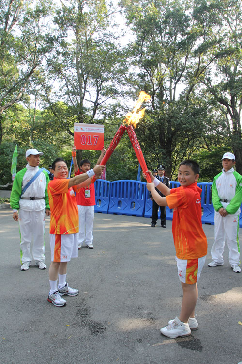 五羊雕像绿荫辅道 董事长何国才先生把火炬传递给18号火炬手