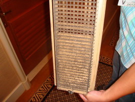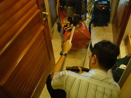 客户名称:康丽酒店CONRAD HOTELS & RESOTS 项目名称:将客房转换成空气净化器 工程现场图片: 银康处理前供风口的栅格 银康处理前风机盘管的风管 银康处理前先测量风速 拆下清洗过滤网的栅格 银康处理前测得表层的细菌数为8,228RLU 检测墙壁表层细菌数 在马桶(瓷质)表层喷涂银康纳米银和光触媒 在木质家具表面喷涂银康的纳米银和光触媒 在窗帘的表层喷涂银康的纳米银和光触媒 银康处理后测得的细菌数为185RLU