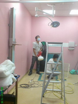客户名称:新加坡国立大学医院National University Hospital 项目名称:表层处理 地址:5 Lower Kent Ridge Road Singapore 119074 电话:(65) 6779 2777工程现场图片: 工程人员正在进行室内表层处理 在金属表层喷涂银康纳米银和光触媒