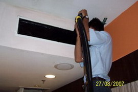 清洗前的FCU的出风口 工程人员正在吸出风口的尘埃