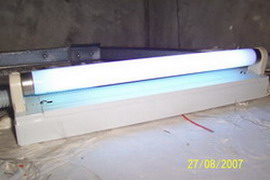 装上UV等来启动光触媒工作 工程人员正在表面喷涂银康光触媒和纳米银