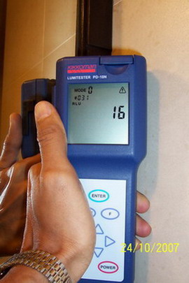 处理前表面细菌数采样 处理前测得表面细菌数为22918RLU