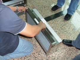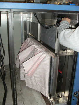 客户名称:香港九龙城法院 项目名称:在风柜安装DF过滤网 工程现场图片: 香港九龙城法院大楼 没有安装DF过滤网的风柜 在口袋式过滤网上喷涂银康涂层 DF过滤盒 DF口袋式过滤网 中效过滤网和初效过滤网 正在安装过滤网的框架 安装好DF过滤网的风柜 安装好了DF初效过滤网 安装好了DF中效过滤网