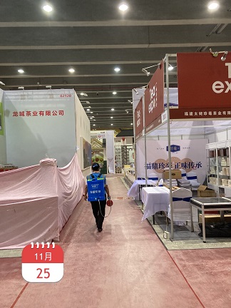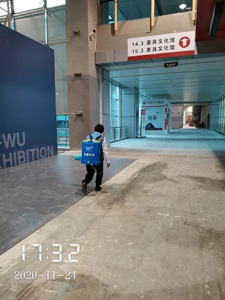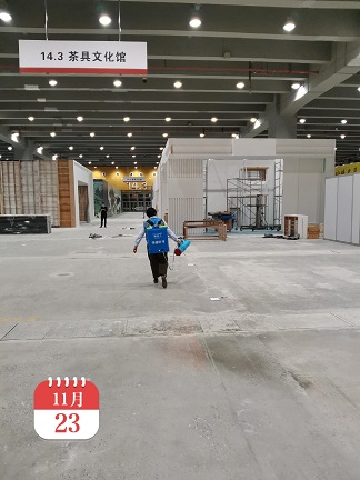 2020年11月23日-30日,银康进行琶洲国际会展中心C区-茶博会防疫消毒服务。以下是进行消毒服务的相关图片:
