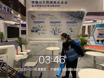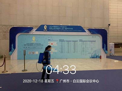 2020年12月18日,银康对广州白云国际会议中心-海交会活动现场进行:东方厅、花城厅、珠江厅及3号楼大堂进行防疫消毒服务。以下是进行消毒服务的相关图片: 东方厅消毒: 花城厅消毒: 珠江厅消毒: 3号楼大堂消毒: