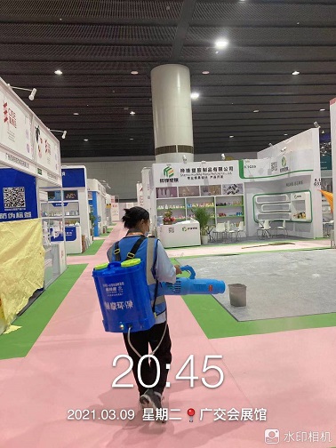 2021年3月7-12日,银康公司承包琶洲国际会展中心A、B、C区共28个馆-广州国际美博会防疫消毒服务。以下是进行防疫消毒服务的相关图片: