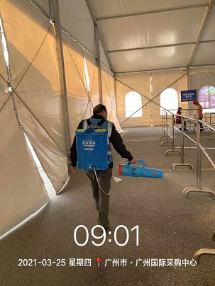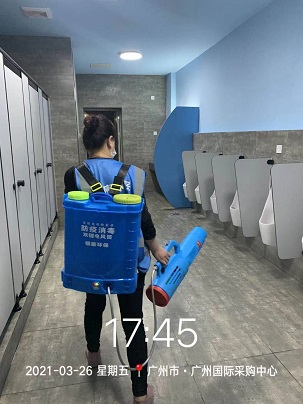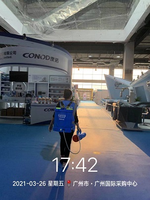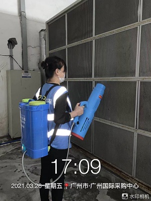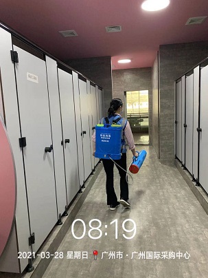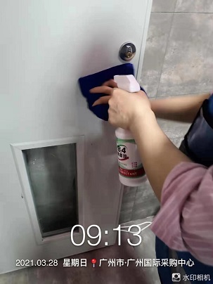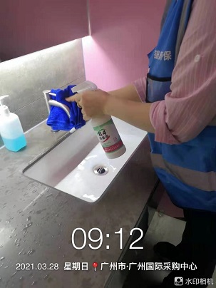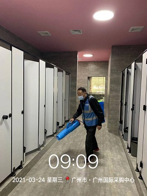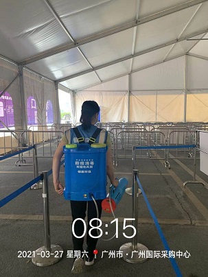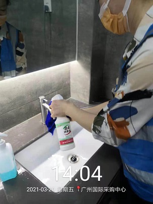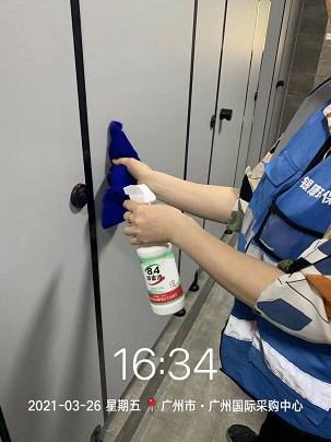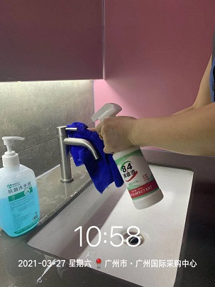 2021年3月23日-28日,银康承包广州国际采购中心-第十九届医疗器械展保洁及防疫消毒服务,以下是保洁及消毒服务的相关图片: