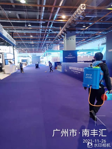 2021年11月22日-28日,银康公司承包南丰国际会展中心-2021(第十六届)中国电子政务论坛暨首届数字政府建设峰会-展馆保洁及防疫消毒服务。