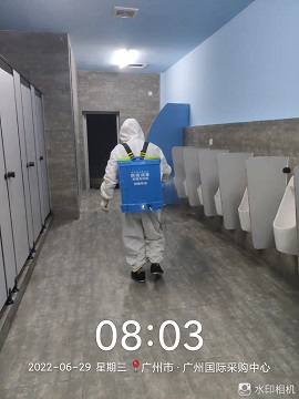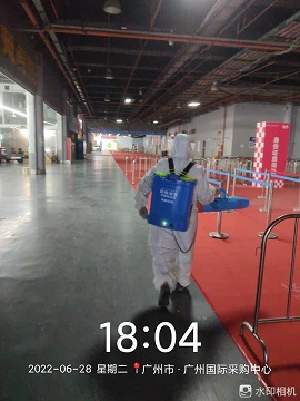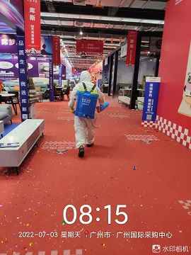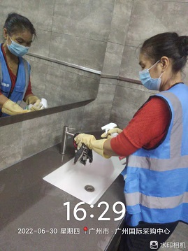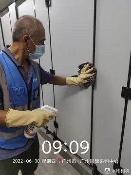 2022年6月28日-7月4日,银康承包广州国际采购中心展馆-2022年华夏家博会保洁及防疫消毒服务。