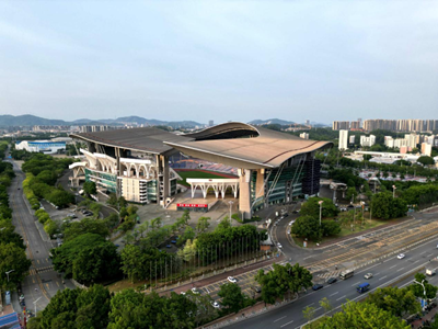 奥林匹克体育场位于奥林匹克体育中心南部,总占地面积14.56万平方米,可容纳观众8万人。该体育场从 1998年12月31日动工到2001年9月31日竣工,创造了国内体育场馆六个"最":速度--在国内同类场馆中建设速度最快;规模--目前国内最大、最好;设计--最早采用分开的"缎带"式屋顶;技术含量--电子田径记分系统最先进;技术水平--电子显示屏效果全国最佳;舞台--规模最大。这里承办了中华人民共和国第九届全运会的开幕式和田径、足球等比赛项目。
